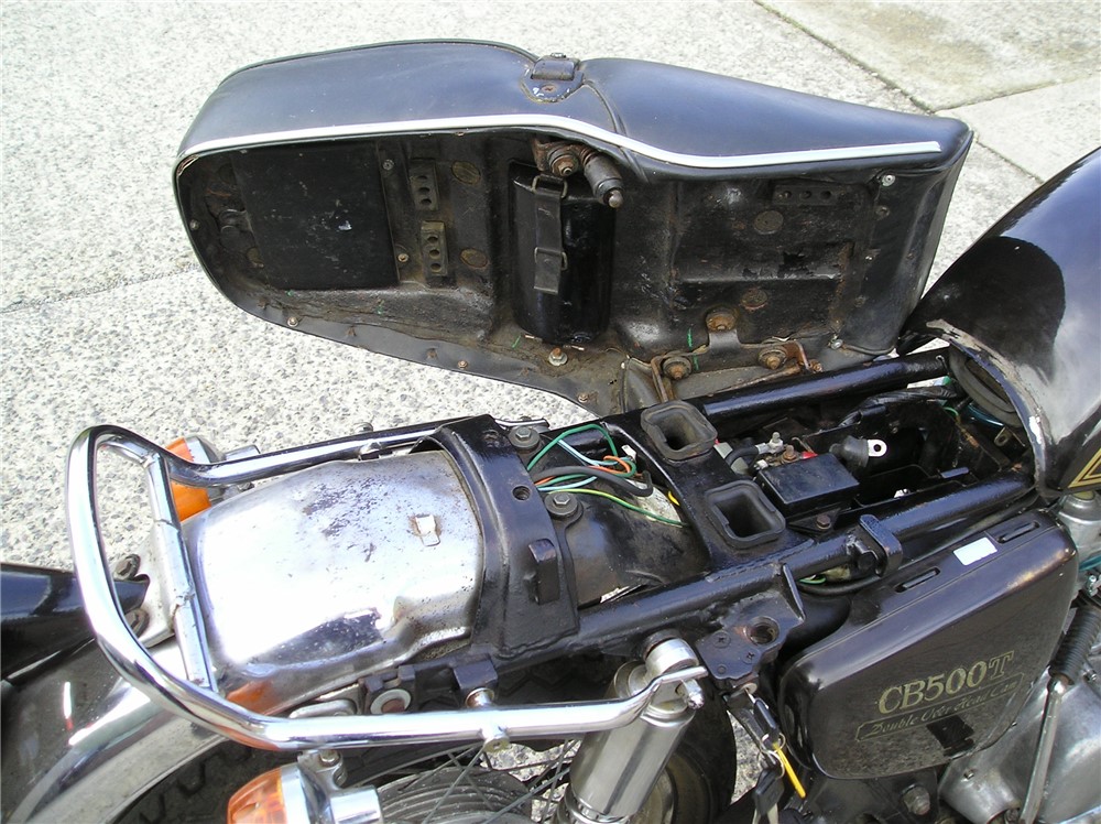 This CB500T is only suitable for full restoration or spares really,It's scruffy,doesn't run,has had repairs to the exhausts etc,and is generally pretty 'weathered' all over. It turns over,but has low compression,although it has had some engine work done in the past,but without much success. Inside of the tank is good,seat is decent,mudguards are solid,and it does come with a V5c and a few spares.
