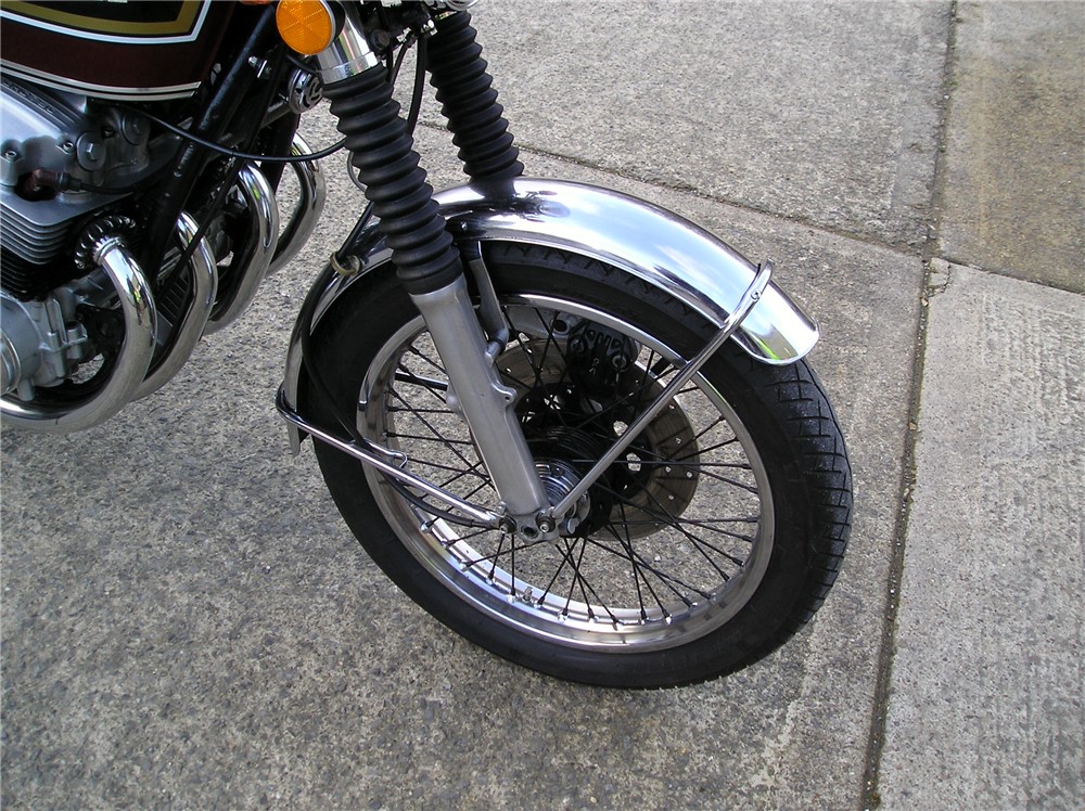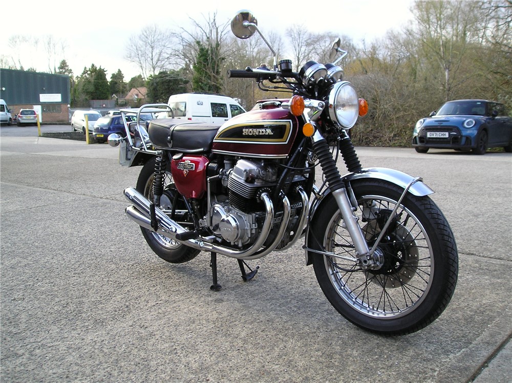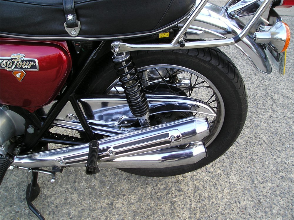 This is a late registered genuine UK bike that starts easily,and which went well on a couple of decent length test rides beween showers. It has an excellent original exhaust system fitted,very good mudguards,NOS fuel tank by the look of it,decent rims,seat etc.Koni shocks and electronic ignition too.It comes with the original shocks,should anyone want to put them back on. It's had plenty of owners during it's life,but has been well looked after by the look of it,and comes with some receipts,old MOT's etc. An attractive 750/4 at sensible money.