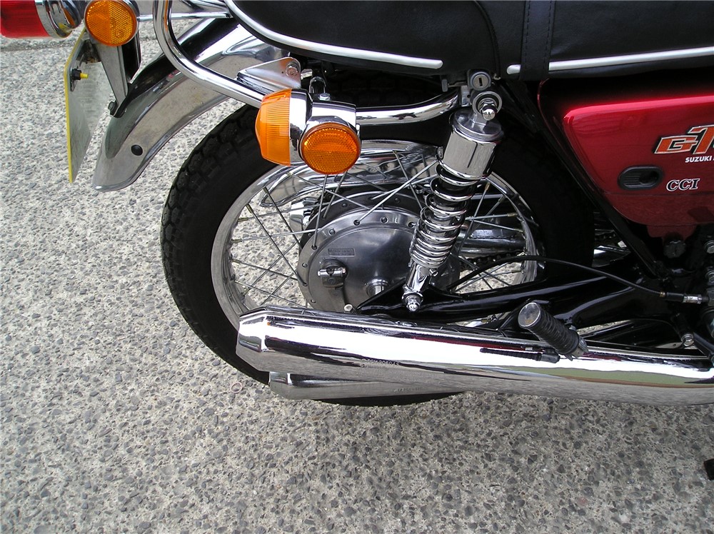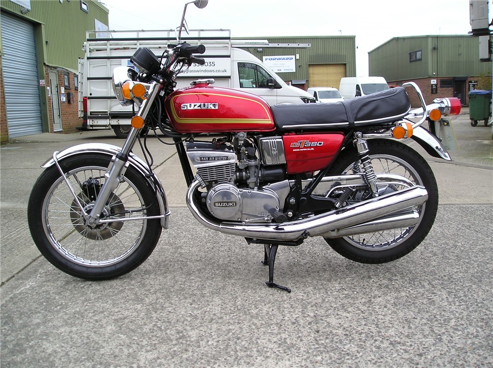 This is a lovely looking GT380 that has a lot of work carried out on it including paintwork done to a high standard,rechromed exhausts,excellent mudguards etc. I'm selling it as a project though,as it starts and runs and sounds fine iniatially,but when it warms up it loses compression on the right hand cylinder,and develops a rattle that comes and goes,so will need investigating before use. There's nothing to do cosmetically,so if you like doing mechanical work it will be a lovely bike once it's sorted out.