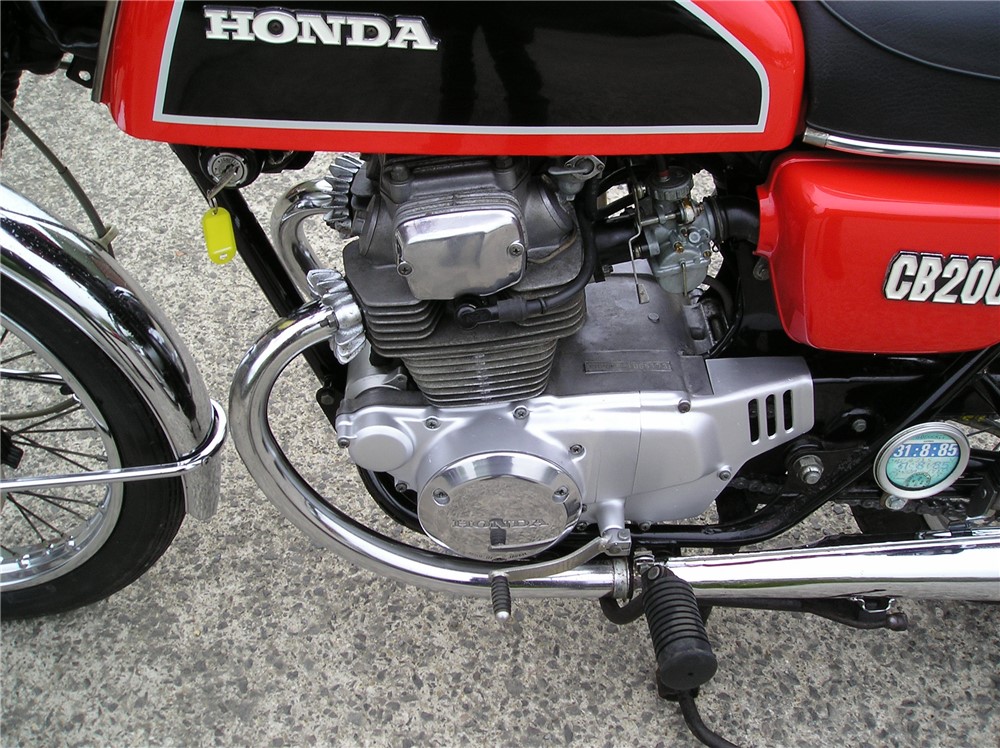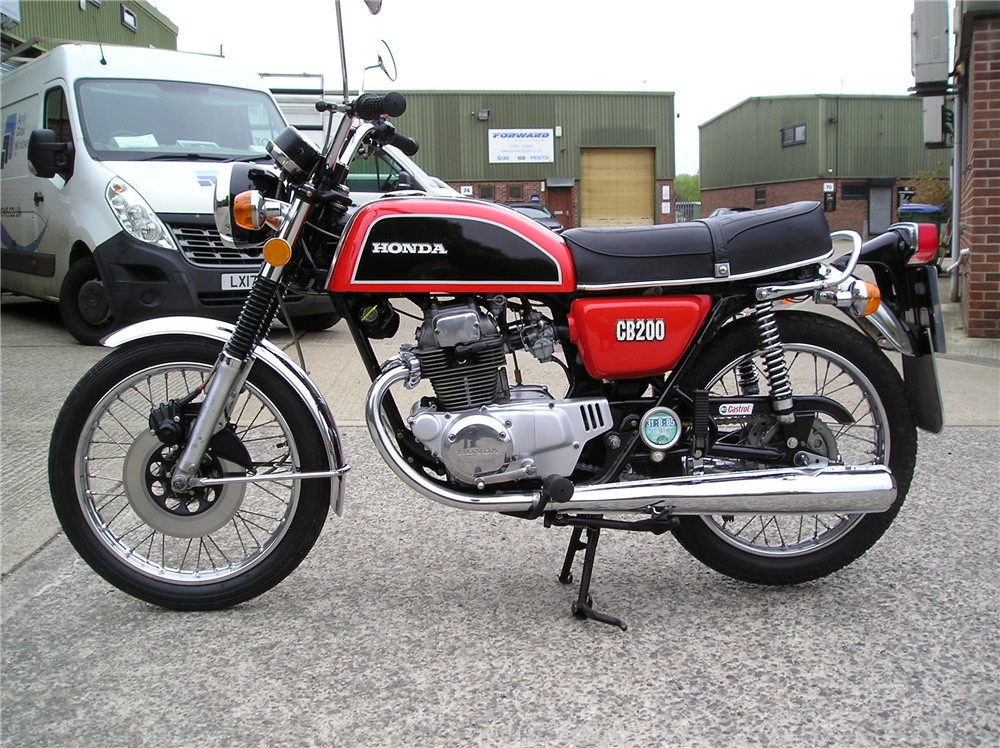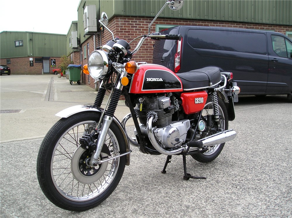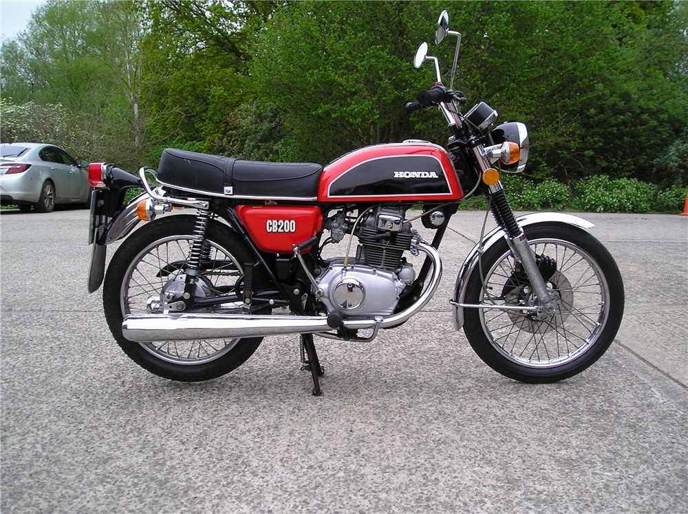 This low mileage CB200 was last on the road in 1985 having been owned by 2 neightbours,neither of which gave it much use,before being acquired in 2024 by the person I bought it from. It's in original and unmolested condition bar the fitment of pattern silencers at some point in the past,and uprated rear shock absorbers. It's has a certain amount of recommissioning done recently, including new clutch plates,oil change and filter cleaned,carb clean,new battery etc,and now starts and runs and rides,and went very well on a 5 mile ride. It's still on it's original Yokohoma tyres which point to the mileage being correct,but they will need changing before serious use. Comes with some receipts and original handbook.