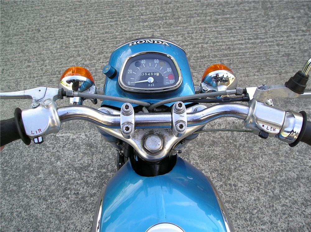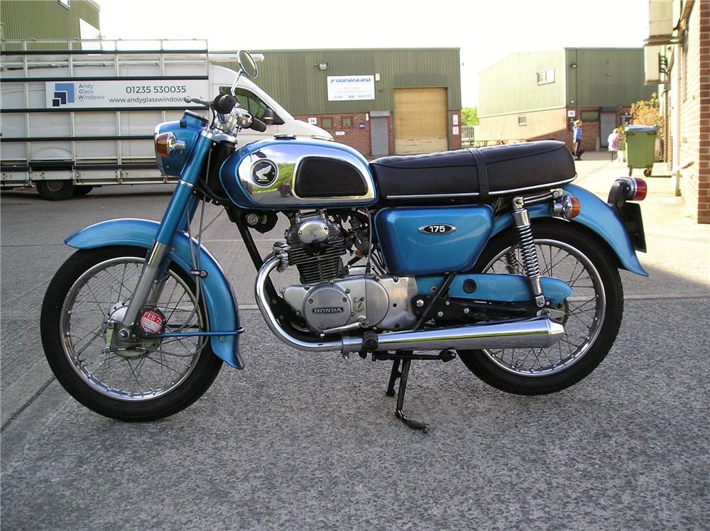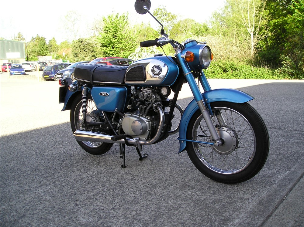 This is a sound little CD175 that starts and runs well,and which went fine on test. It's not a showpiece,but is an attractive and usable bike that benefits from electronic ignition,new tyres,recent oil change etc. It has aftermarket silencers fitted which I have to say give it quite a beefy exhaust note that you would expect from a bigger bike! Mudguards are solid,paintwork is generally good with a couple of touched up areas,and seat has been recovered at some point,but overall it's a decent,sound example than could be left alone and enjoyed as is,or taken to the next level without too much effort.Comes with a few spares including lower chain guard and original airbox as it's currently running on a K&N filter.