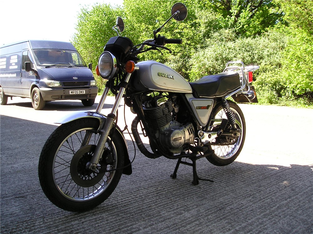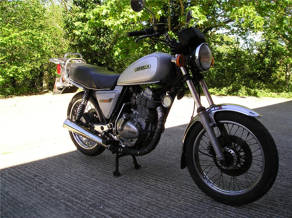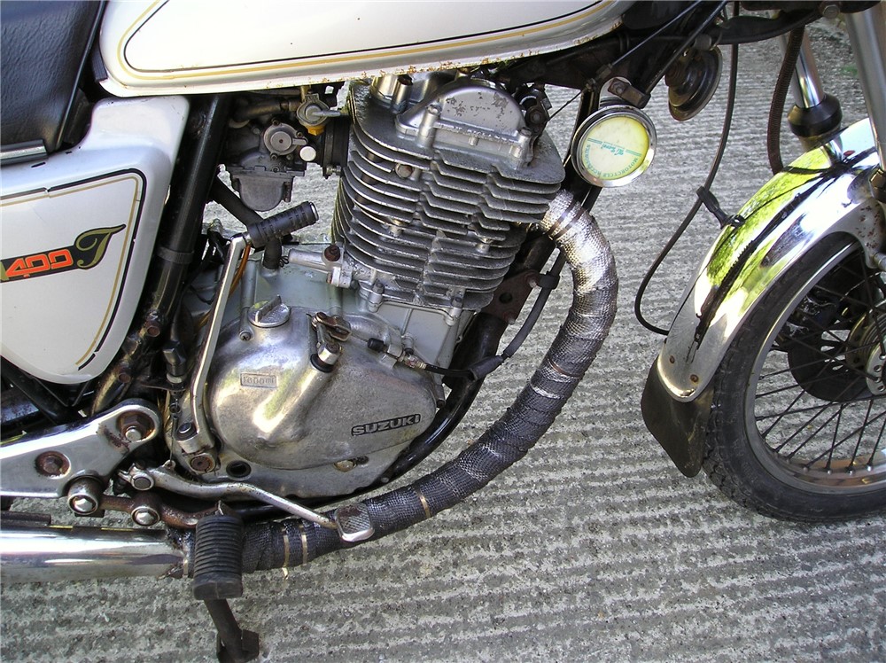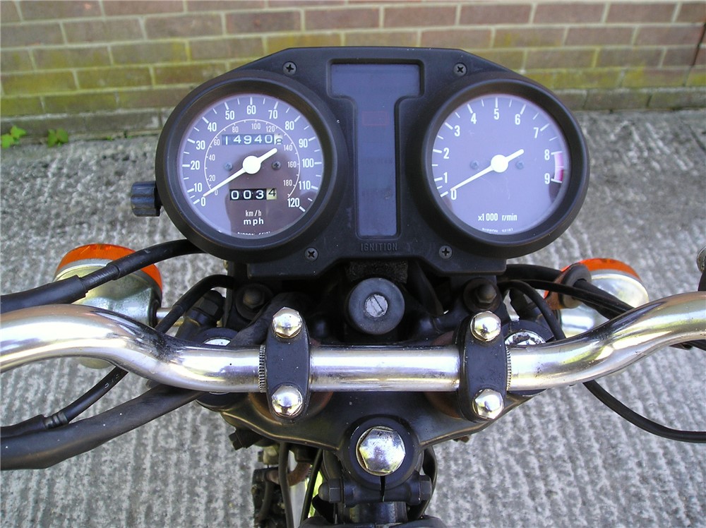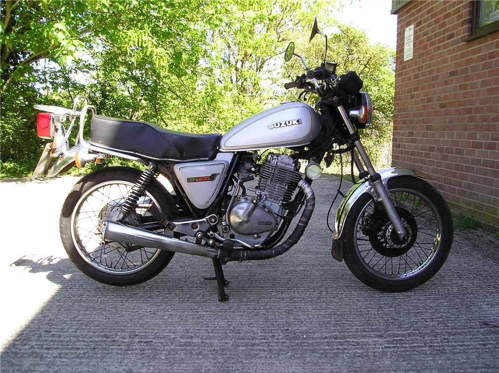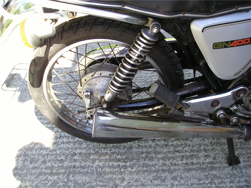 This is a now,quite rare GN400 that hasn't been used for quite some time,but with a carb clean and new battery,fired up very readily,sounds as sweet as anything,and felt fine on a test ride,pulling surprisingly well. Strangely enough,these 400's are 6v electrics and kick start only,and this one certainly has some compression,and although does have a decompressor fitted,you need a strong right leg to start it ! Cosmetically it's showing it's age a bit,but is still an attractive enough looking example of a fairly uncommon bike,and probably best thought of as one to ride and improve.