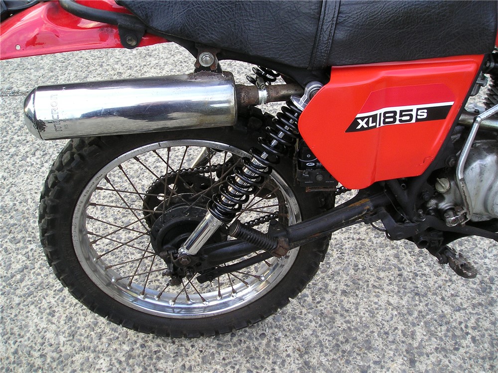 This XL185 S has been off the road for quite some time,but started up very readily,and pulled well on a short test ride,and rode nicely. It's tidy enough,has an after market exhaust and rear light fitted,but is otherwise pretty standard The rims are sound,seat is good,it's had new rear shock absorbers fitted,engine sounds fine and it's registered as Historic.