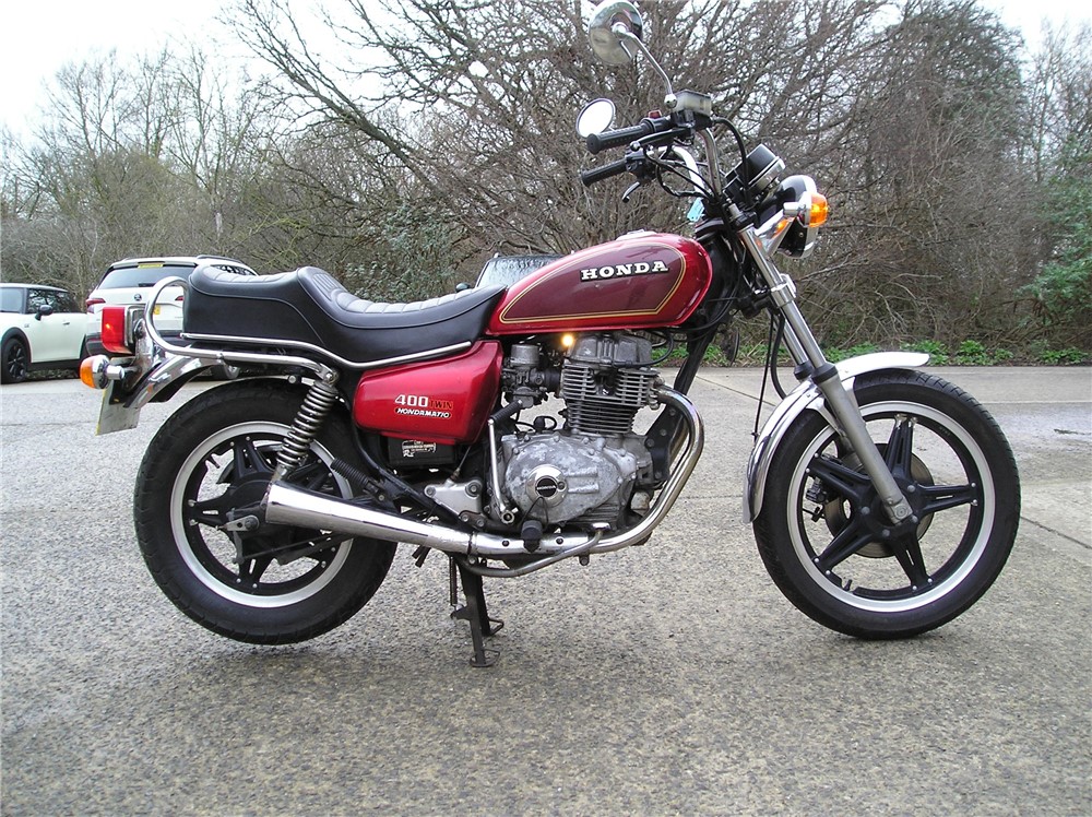 This would make a great,easy project for someone as it starts,runs and rides,sounds fine,and also felt fine on a brief ride. It could do with a carb clean and a couple of silencers as they've started to go,although the rest of the system is fine. I really like these 400 Hondamatics,as they're much more fun to ride than people think they'll be,and also quite nippy too.