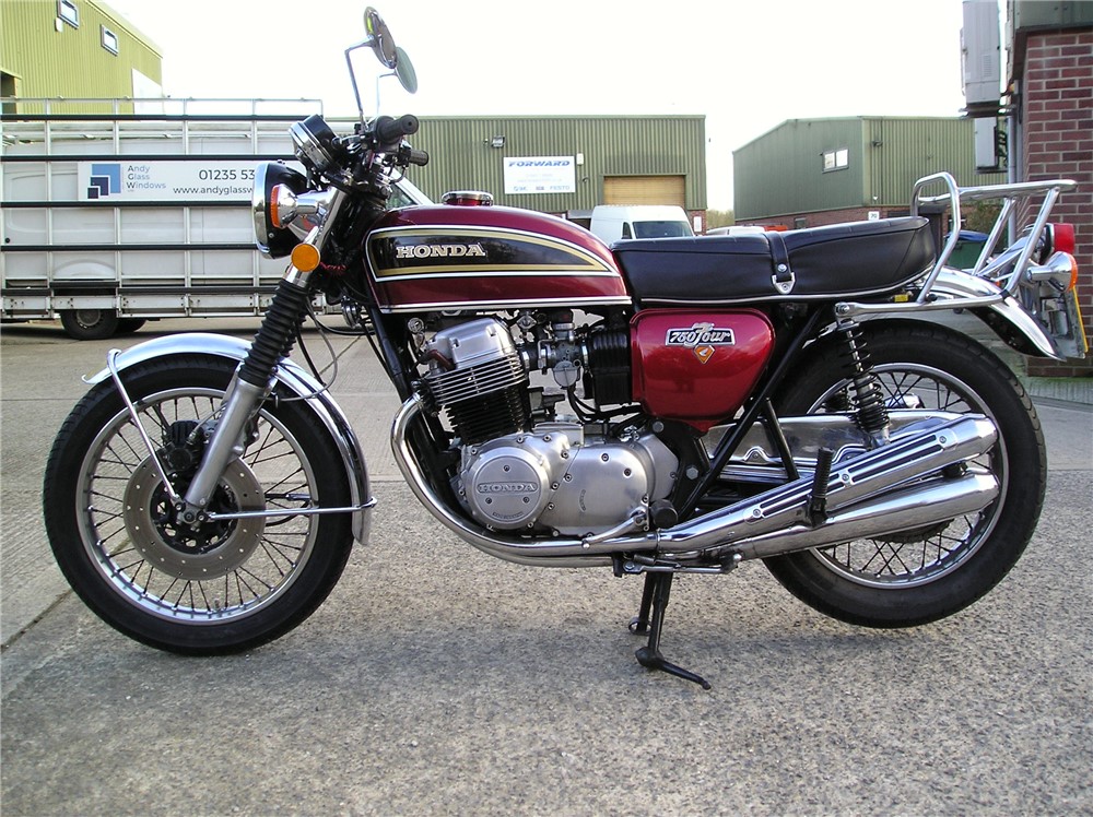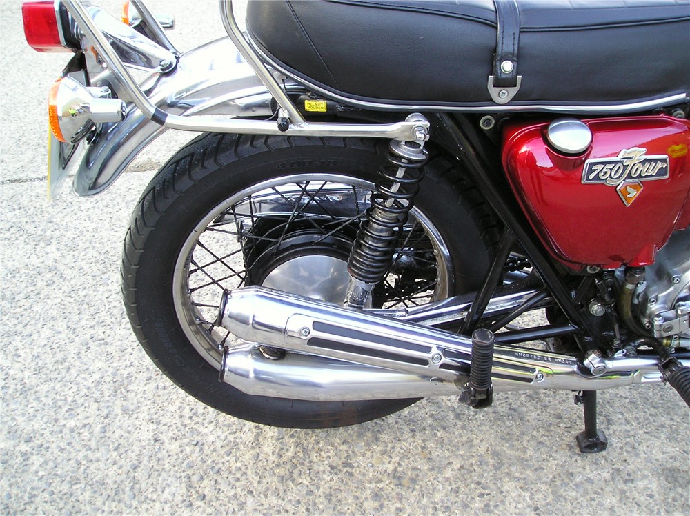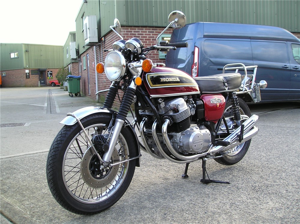 This is a late registered genuine UK bike that starts easily,and which went well on a couple of decent length test rides beween showers. It has an excellent original exhaust system fitted,very good mudguards,NOS fuel tank by the look of it,decent rims,seat etc.Koni shocks and electronic ignition too.It comes with the original shocks,should anyone want to put them back on. It's had plenty of owners during it's life,but has been well looked after by the look of it,and comes with some receipts,old MOT's etc. An attractive 750/4 at sensible money.