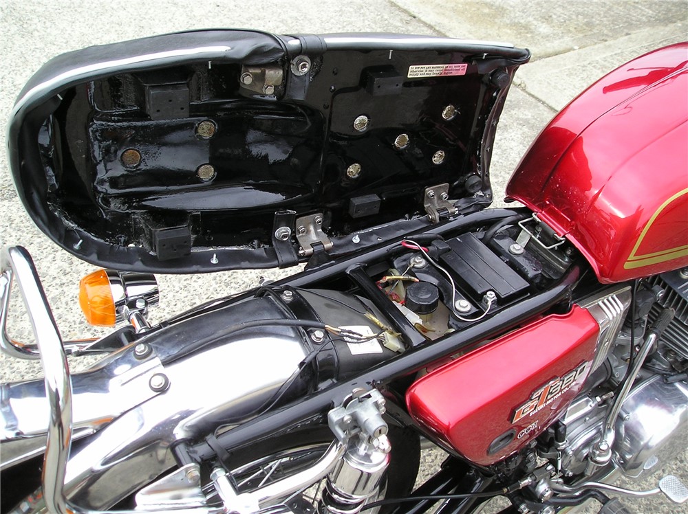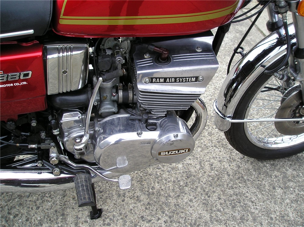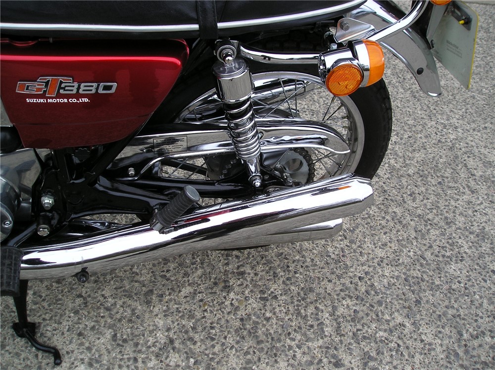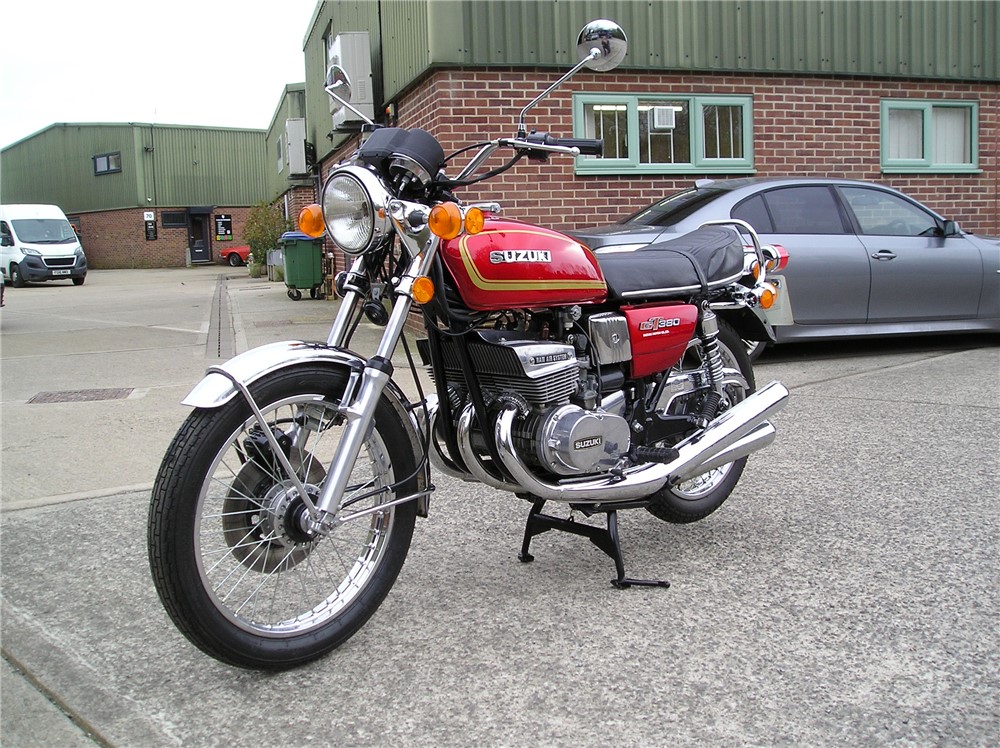 This is a lovely looking GT380 that has a lot of work carried out on it including paintwork done to a high standard,rechromed exhausts,excellent mudguards etc. I'm selling it as a project though,as it starts and runs and sounds fine iniatially,but when it warms up it loses compression on the right hand cylinder,and develops a rattle that comes and goes,so will need investigating before use. There's nothing to do cosmetically,so if you like doing mechanical work it will be a lovely bike once it's sorted out.