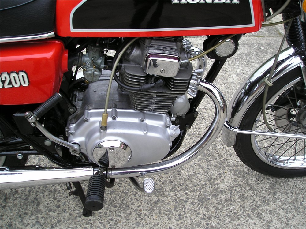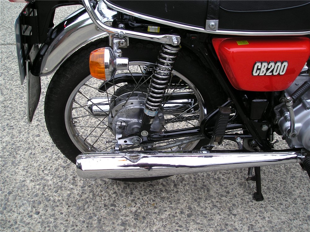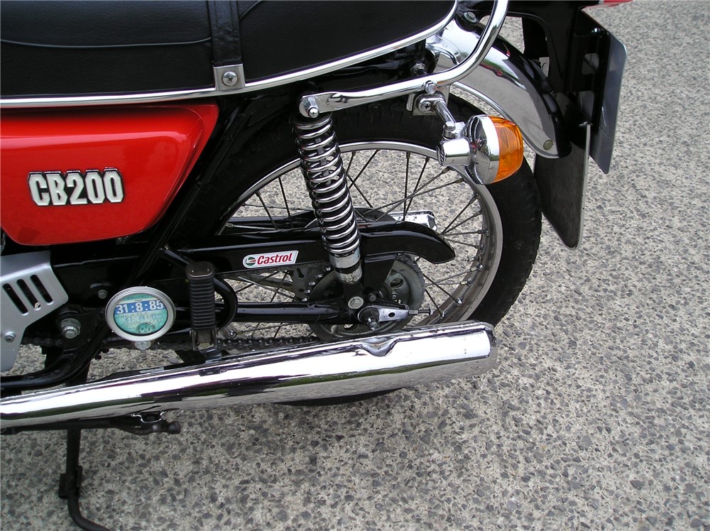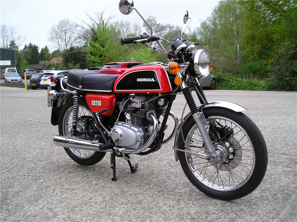 This low mileage CB200 was last on the road in 1985 having been owned by 2 neightbours,neither of which gave it much use,before being acquired in 2024 by the person I bought it from. It's in original and unmolested condition bar the fitment of pattern silencers at some point in the past,and uprated rear shock absorbers. It's has a certain amount of recommissioning done recently, including new clutch plates,oil change and filter cleaned,carb clean,new battery etc,and now starts and runs and rides,and went very well on a 5 mile ride. It's still on it's original Yokohoma tyres which point to the mileage being correct,but they will need changing before serious use. Comes with some receipts and original handbook.